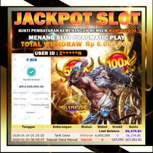 Testi Jackpot Slot Member Mantratoto permainan Pragmatic Play Hari ini dengan bantuan RTP Live Terupdate Setiap Hari.