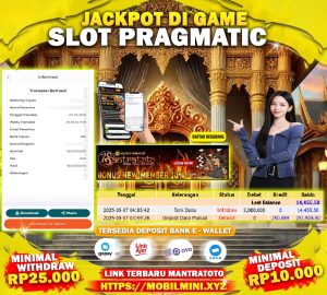 Testi Jackpot Slot Member Mantratoto permainan Pragmatic Play Hari ini dengan bantuan RTP Live Terupdate Setiap Hari.