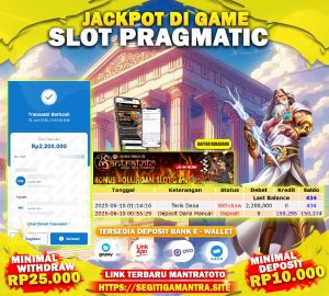 Testi Jackpot Slot Member Mantratoto permainan Pragmatic Play Hari ini dengan bantuan RTP Live Terupdate Setiap Hari.