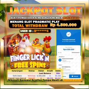 Selamat Telah berhasil Mendapatkan Jackpot di Situs Mantra Slot terbaik.