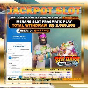 Testi Jackpot Slot Member Mantratoto permainan Pragmatic Play Hari ini dengan bantuan RTP Live Terupdate Setiap Hari.